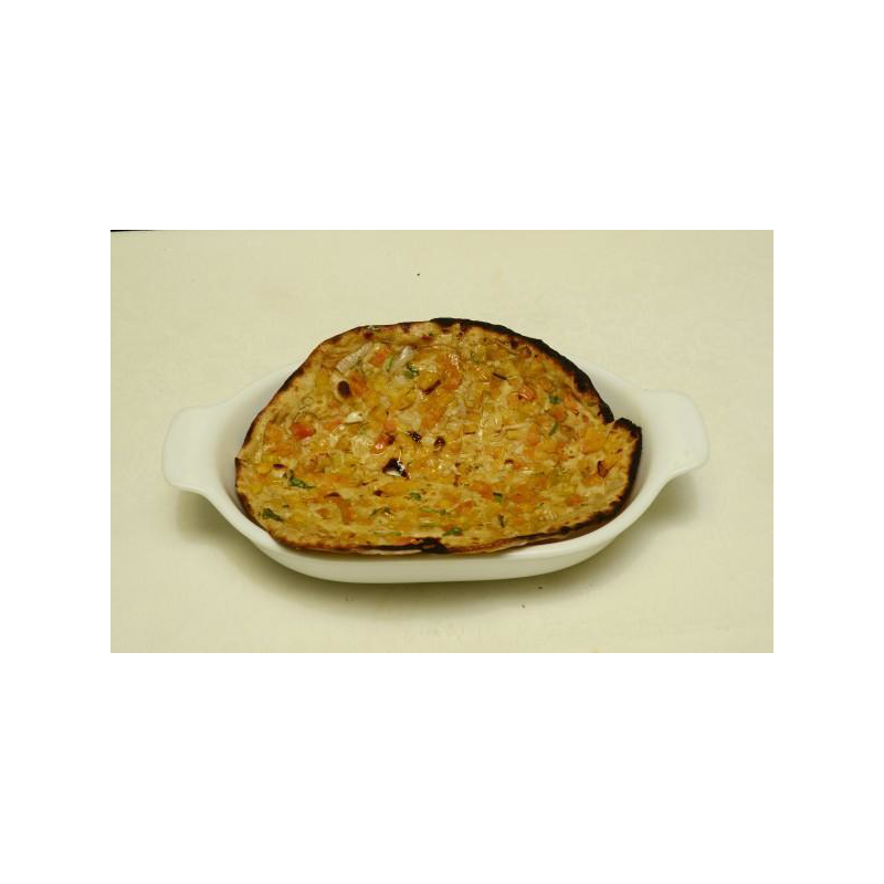Whole wheat Indian bread topped with tomatoes and baked in a clay oven