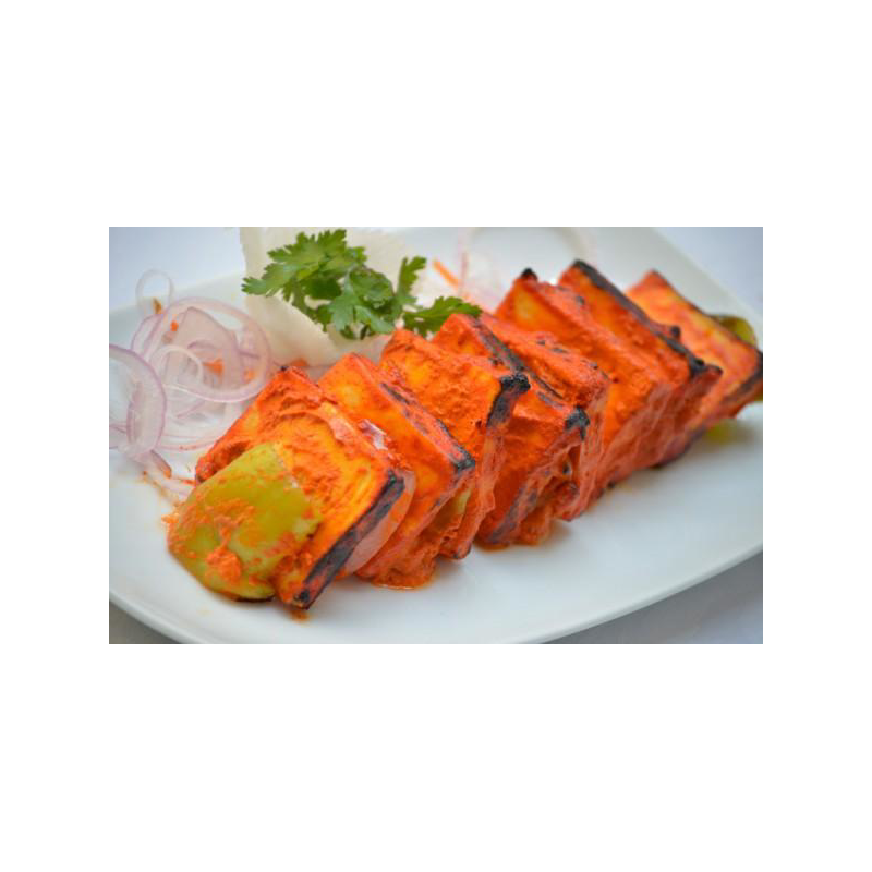 Cubes of cottage cheese marinated in a blend of yogurt and tandoori spices, grilled on charcoal