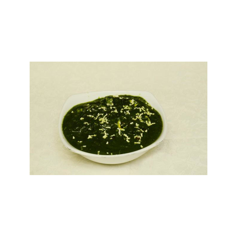 Cubed cottage cheese cooked in flavourful spinach gravy